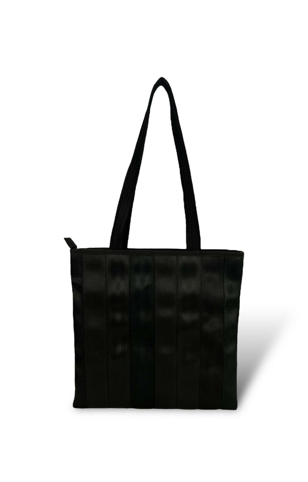 Handcrafted from 4800 lbs of old car seat belts, lined with tear-resistant, water-resistant parachute fabric.