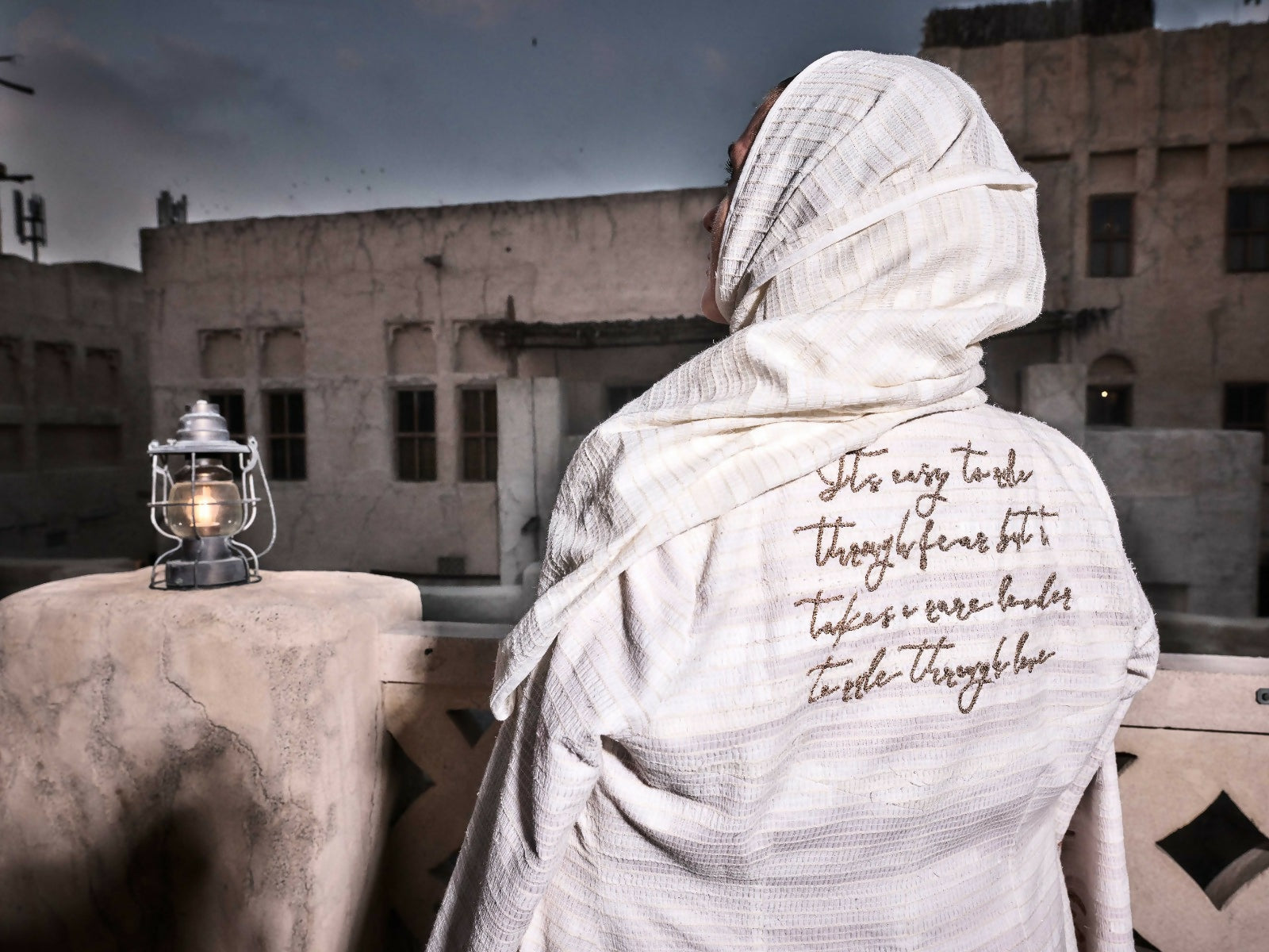 - An elegant ivory scarf crafted from thoughtfully upcycled fabric.