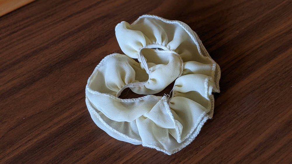 This one of a kind chiffon frilly Scrunchie has been made by upcycling fabric waste. Style it the way you like!