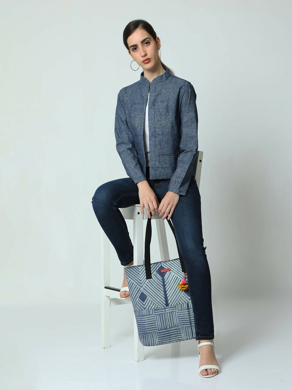 Our packaging bags are made from upcycled white fabric. We then dye these white bags in natural indigo to give it a facelift, so that our customers can enjoy using these bags for later use as well. We use recycled paper for the brand tags and these are attached with threads to the garments.