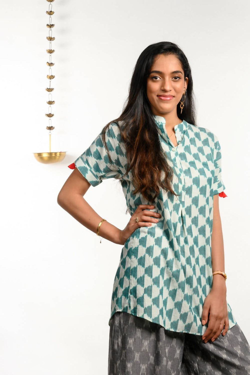 Handloom ikat simple all day wear tunic with collar.
