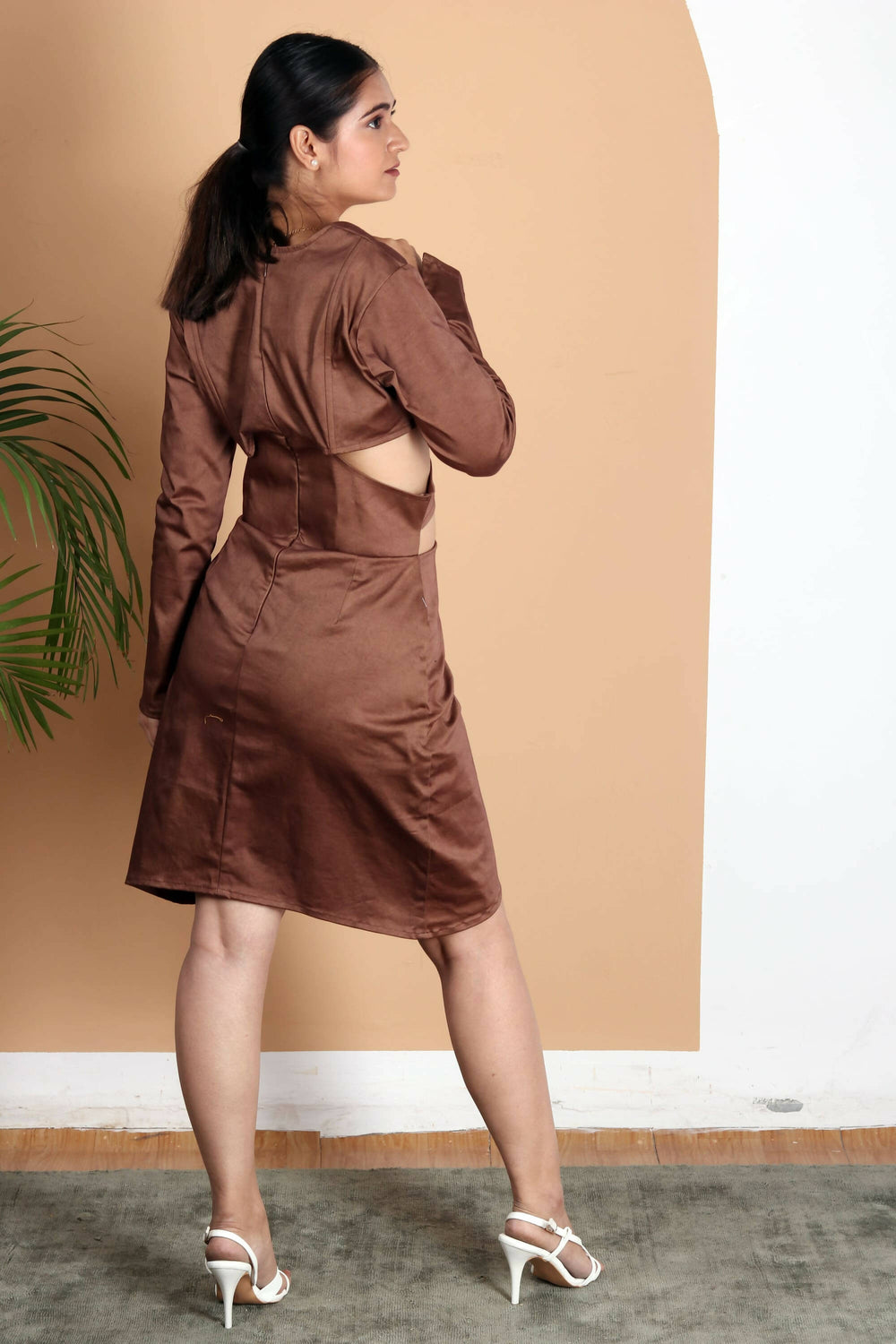Discover the infectious beauty of our ANGELA CAFE NOIR BROWN DRESS emitting youthful energy with no shortage of shine. Made from a cotton blend fabric, Angela delivers a boned corset style with a foxy twist around the neckline. The cutout detailing elevates the overall look delivering a perfect sense of style.