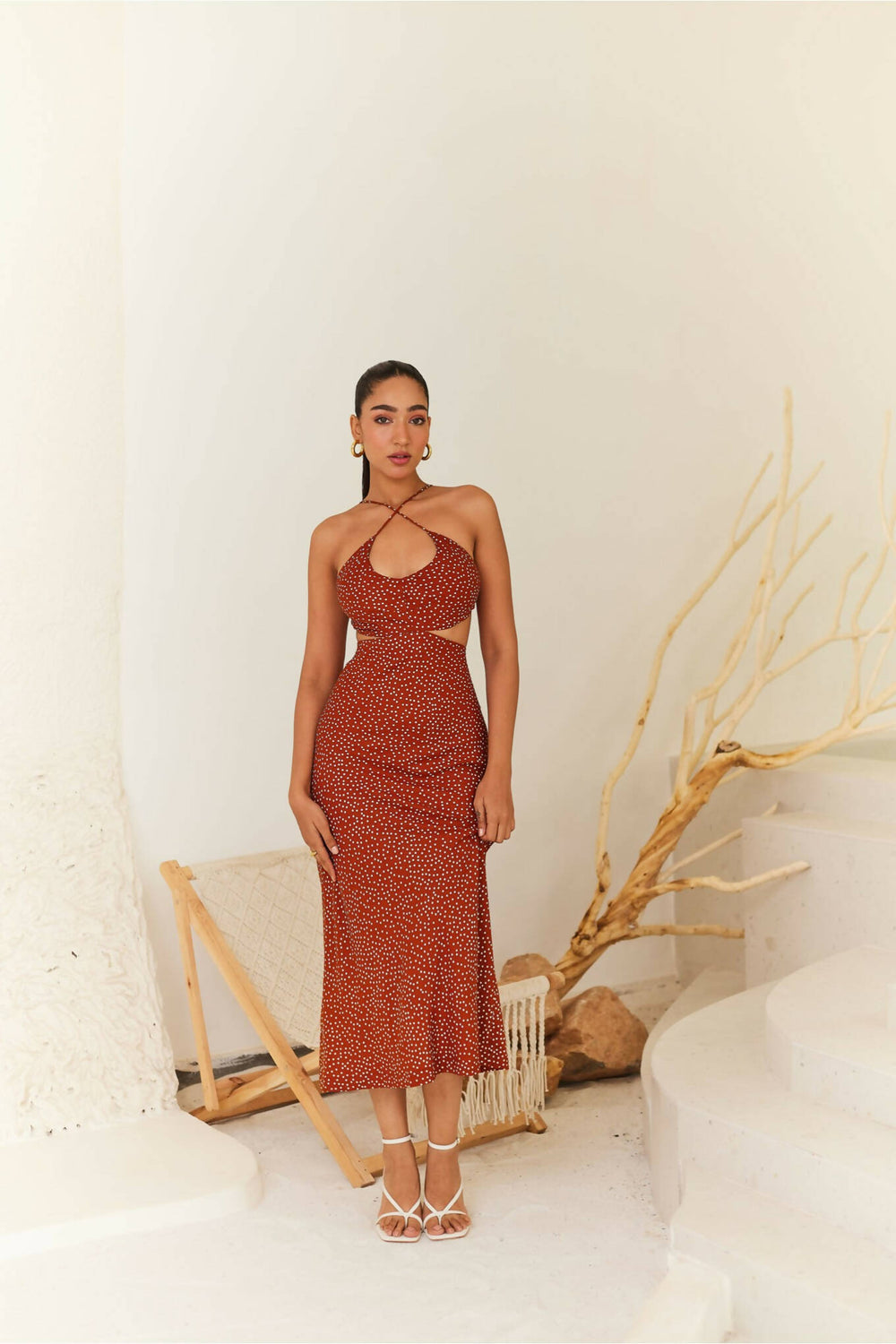 - Leave a lasting impact with this backless midi dress, a sustainable, made to order piece.