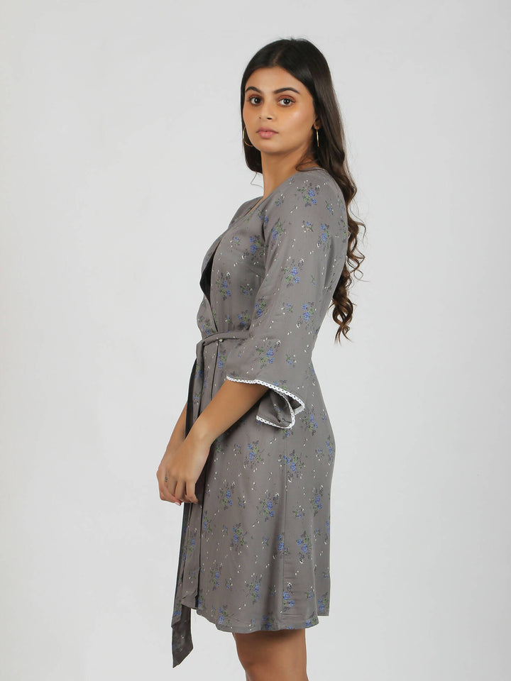 Tie Waist, Shawl Collar, Regular fit Modal Robe Dress Buttons to Convert into Dress.