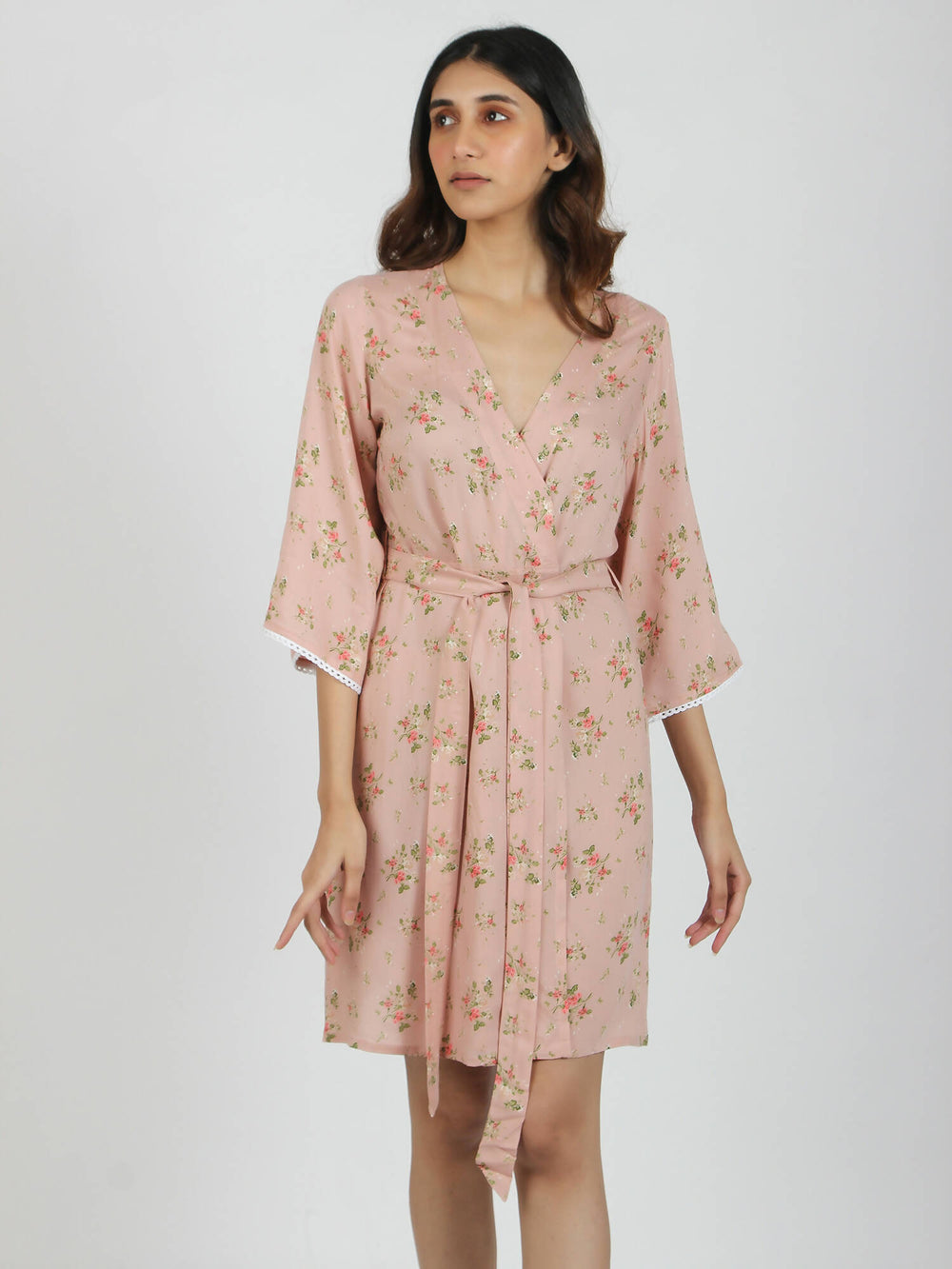 Tie Waist, Shawl Collar, Regular fit Modal Robe Dress Buttons to Convert into Dress.