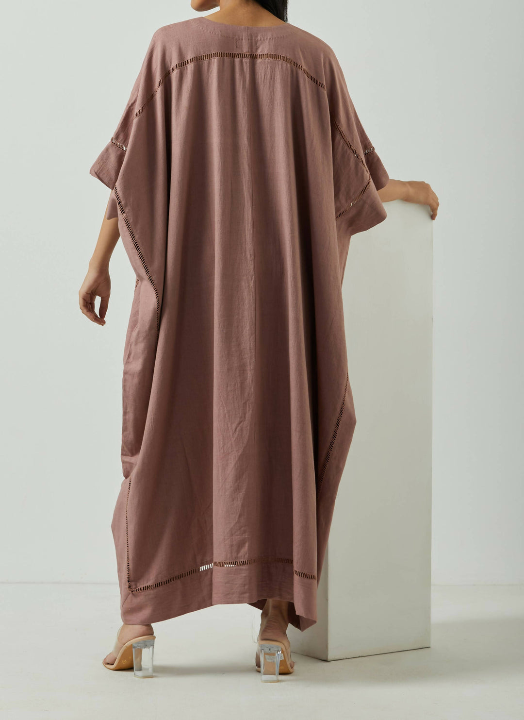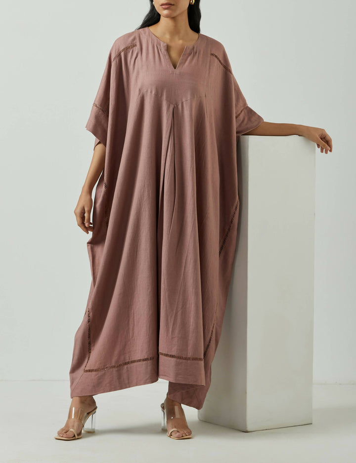 This flowy free-size kaftan dress is a perfect companion for beach lounging or summer vacations. This kaftan is breathable and can complement all body types for its fluid structure. This summer set is comfortable and perfect for any summer occasion.