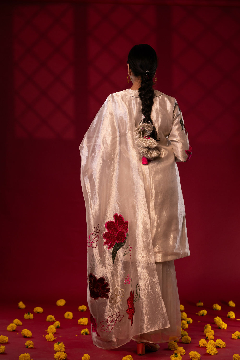 - Kurta: Signature applique with Resham thread embroidery, comfort fit, length - 42", sleeve length - 20", lined with pure silk tissue