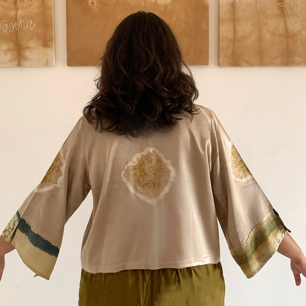 - Using locally sourced marigolds and Catechu for dyeing, and incorporating Shibori technique, this shirt promotes environmental consciousness by reducing marine pollution.
