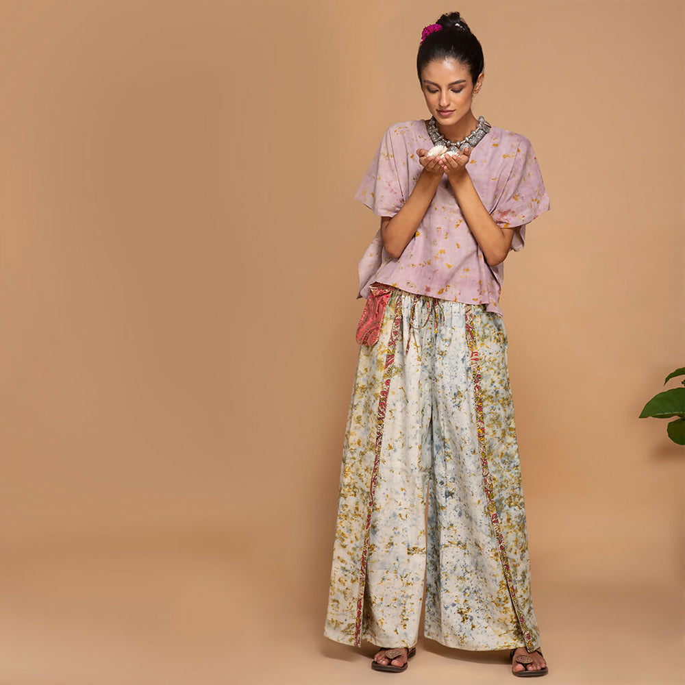 This “Pink mimosa” Naturally dyed Organic Cotton Crop top is a versatile piece, boasting a relaxed silhouette and kaftan-inspired design, offers a touch of bohemian charm to your everyday wardrobe.