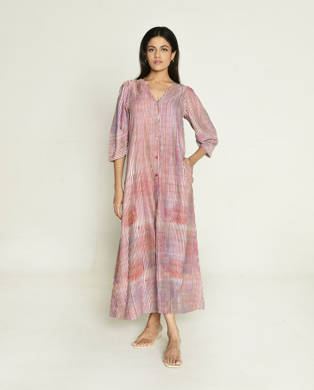 • This gorgeous Shirt Dress, made of fine Cotton Bemberg fabric, will elevate your ethnic outfit. It is adorned with beautiful block printing in an alluring variety of colors, giving it an air of grace and elegance.