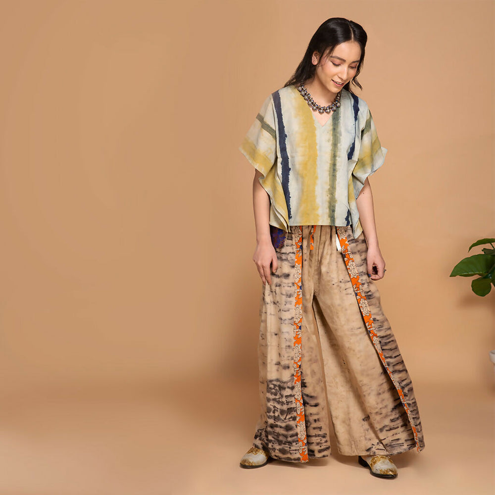 Rekha crop top, crafted from handspun organic cotton and dyed with earth-friendly colors, exudes bohemian charm for everyday wear. Indigo offers a deep, majestic blue symbolizing wisdom and peace, while Harada paints vibrant greens, reflecting strength and resilience.