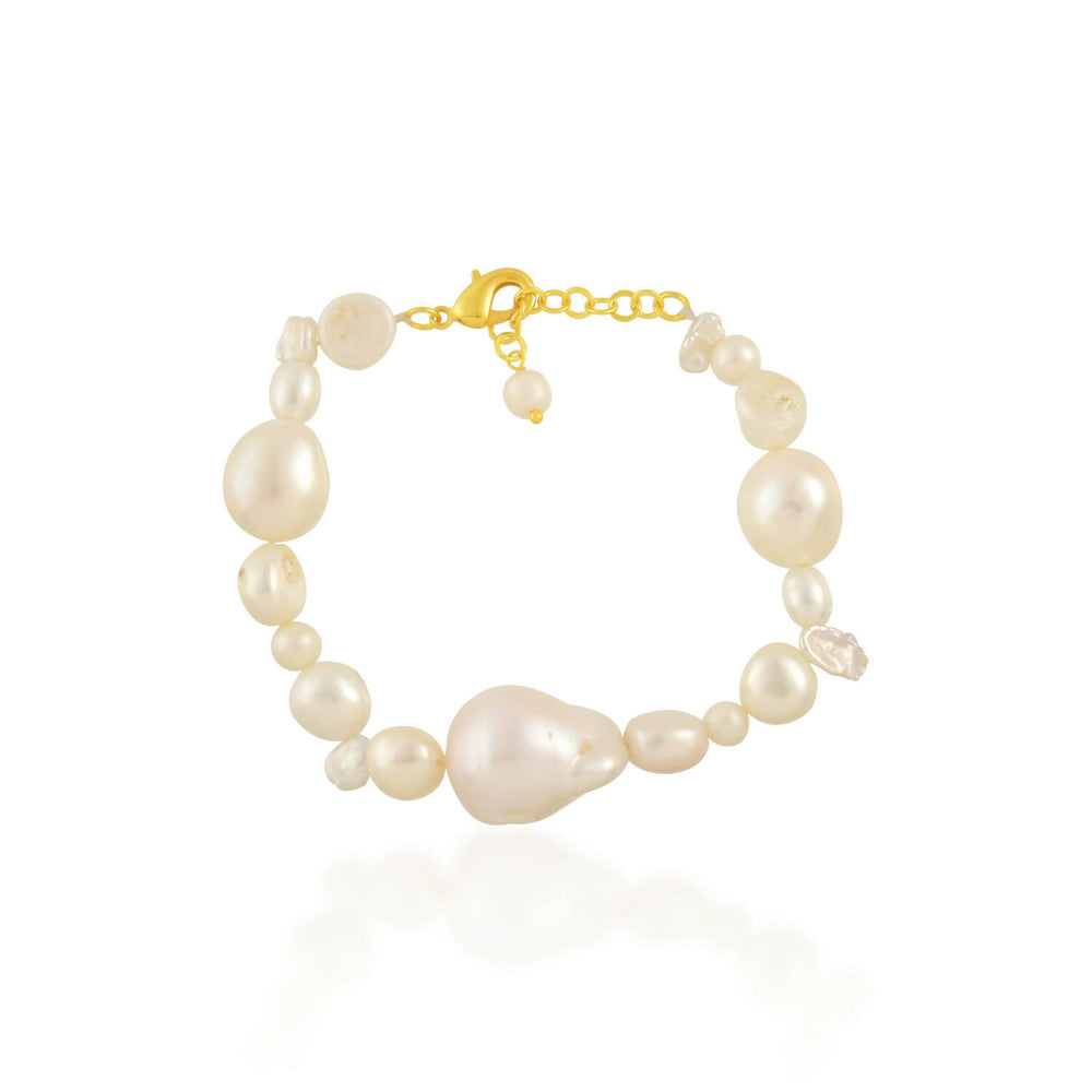 - Make a statement with our Uneven Pearl Bracelet, a contemporary and effortlessly chic piece that artfully combines asymmetry and elegance, showcasing the beauty of irregularly shaped pearls.