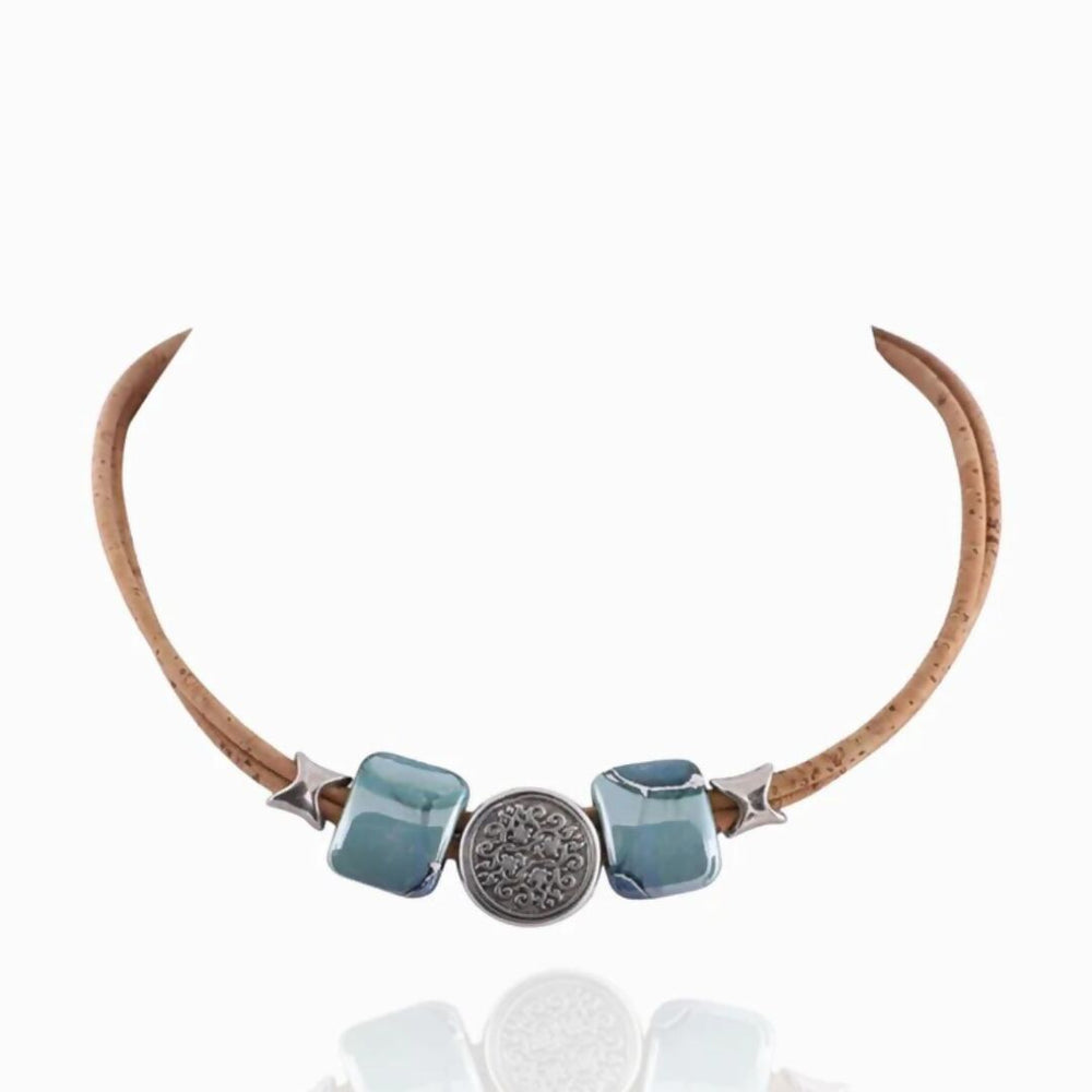 - Inspired by the azure seas, this enchanting piece of Cork and Ceramic creates an arresting glamorous necklace.