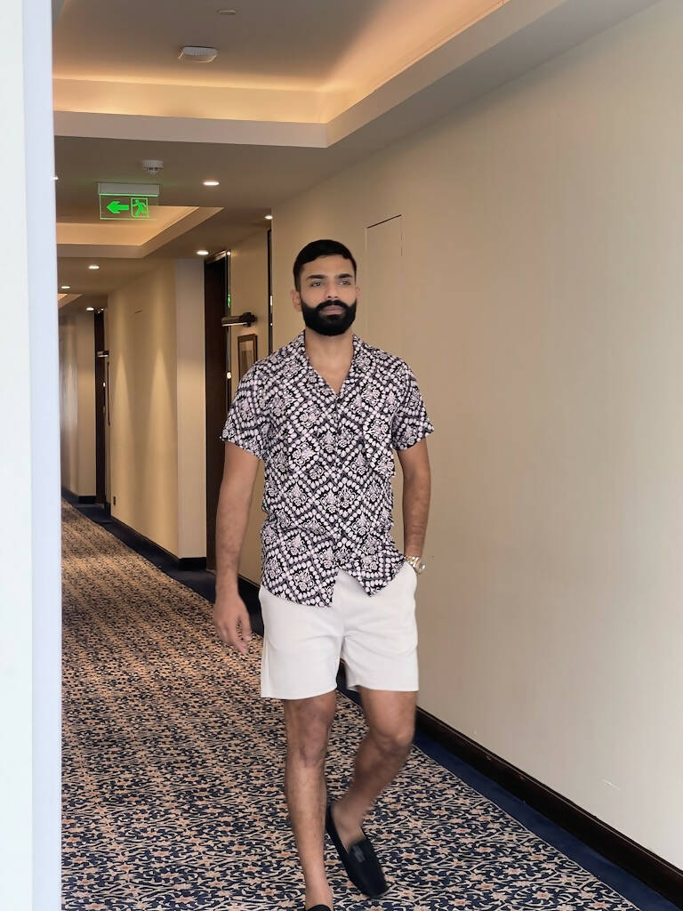 - The black printed shirt is a stylish and elegant piece of clothing.