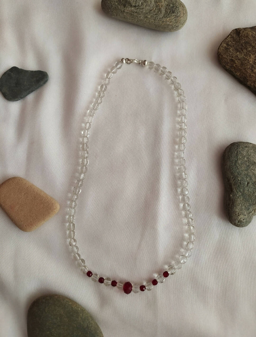 Our Clear Crystal Necklace is upcycled using broken/leftover beads