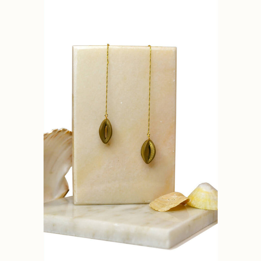 The golden thread with a prism dangler are the perfect minimal accessory pieces. The delicate, flowy earrings can be layered and styled with other accessories or just be worn alone to make a big statement with something so minimal.