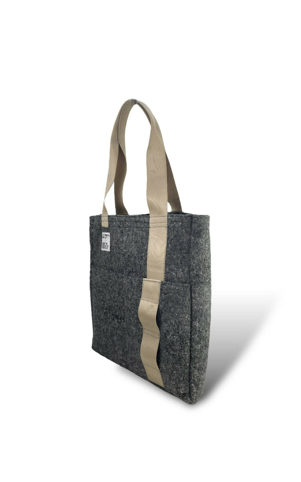 Handcrafted with recycled felt, rescued car seat belts, and lined with soft defense parachutes. Sustainable elegance redefined.