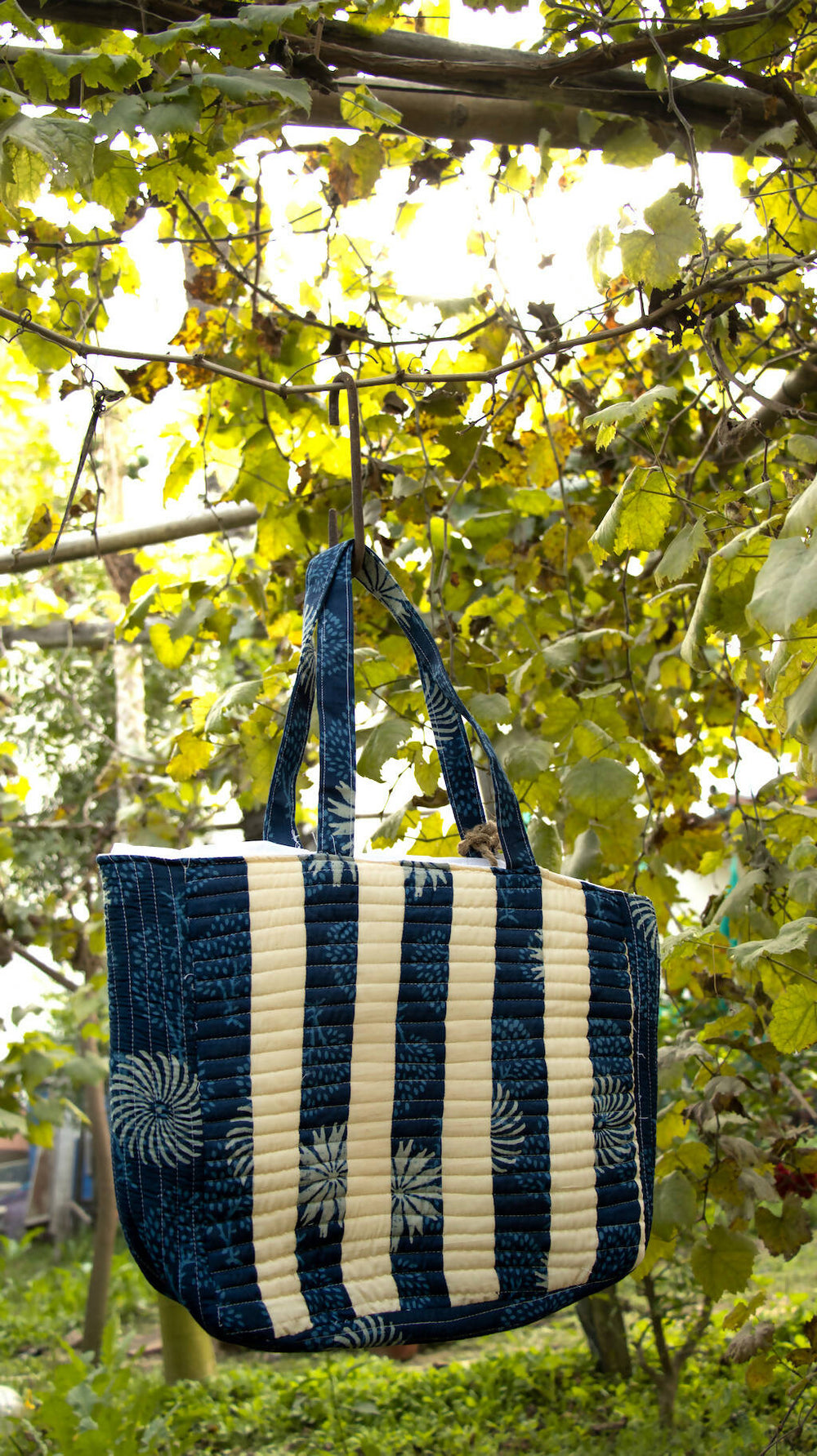 - Carry your essentials in style with our Indigo Quilted Tote Bag, where timeless design meets modern convenience in every stitch.