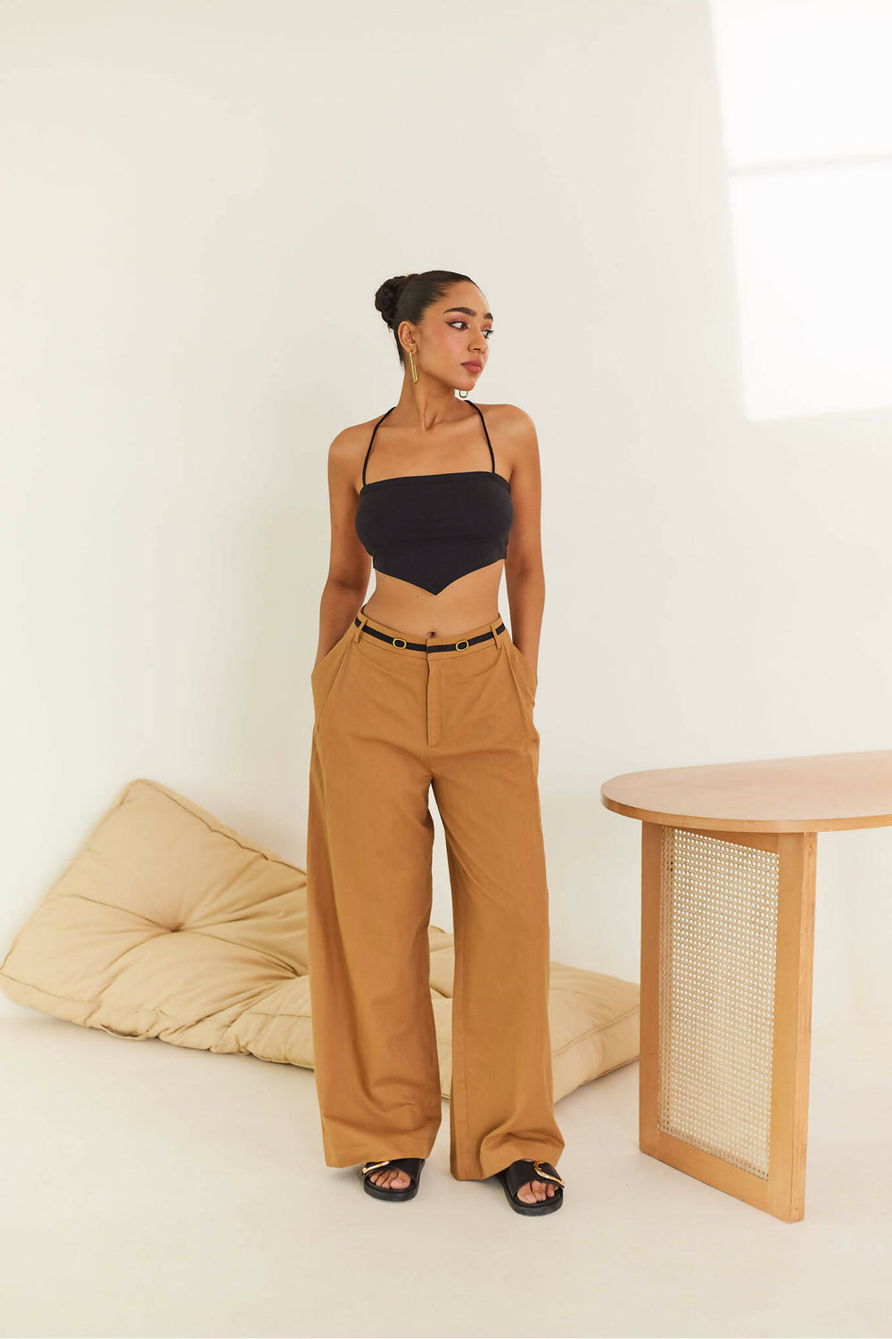 - Chic and trendy, the black knit halter top boasts a V-shaped hemline and knit trims around the neckline for a stylish and flattering look.