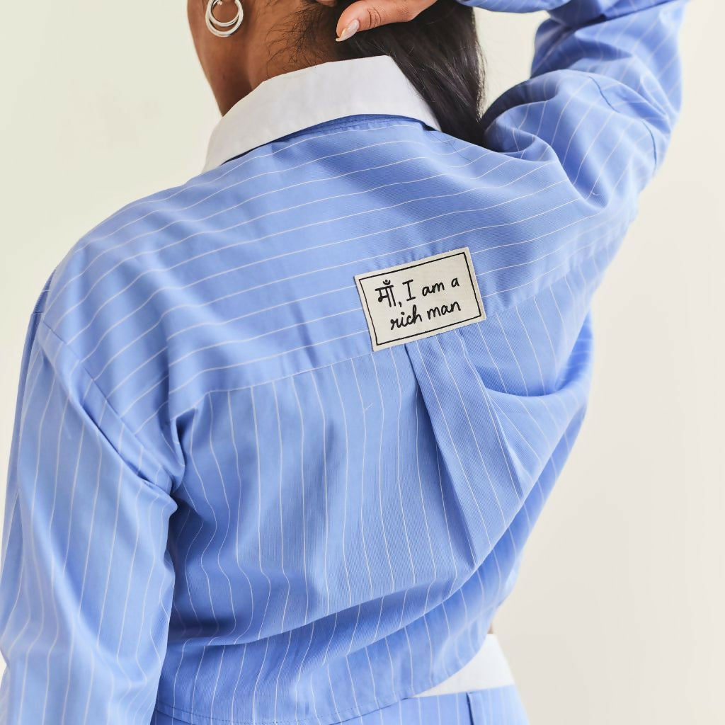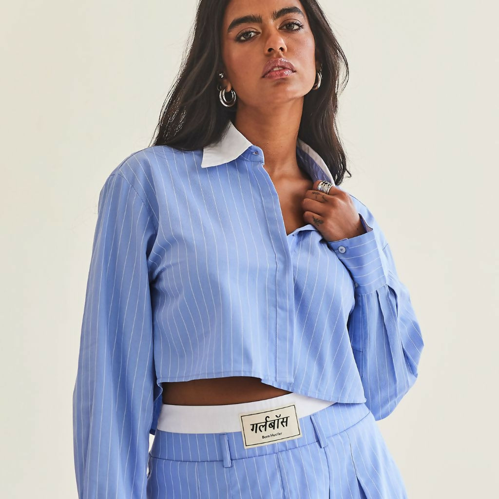 Blue Striped Cropped Shirt