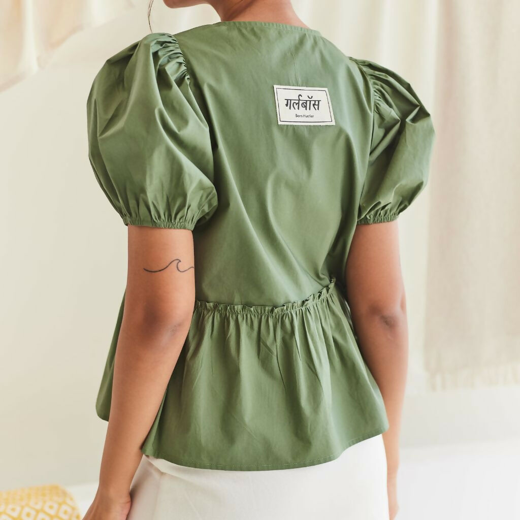 The short puffy sleeves add a touch of playfulness, while the ‘गर्लबॉस’ patch detail on the back makes a bold statement.