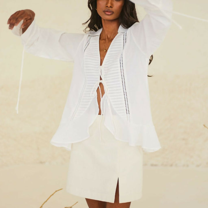 White Ruffled Tie-Up Top