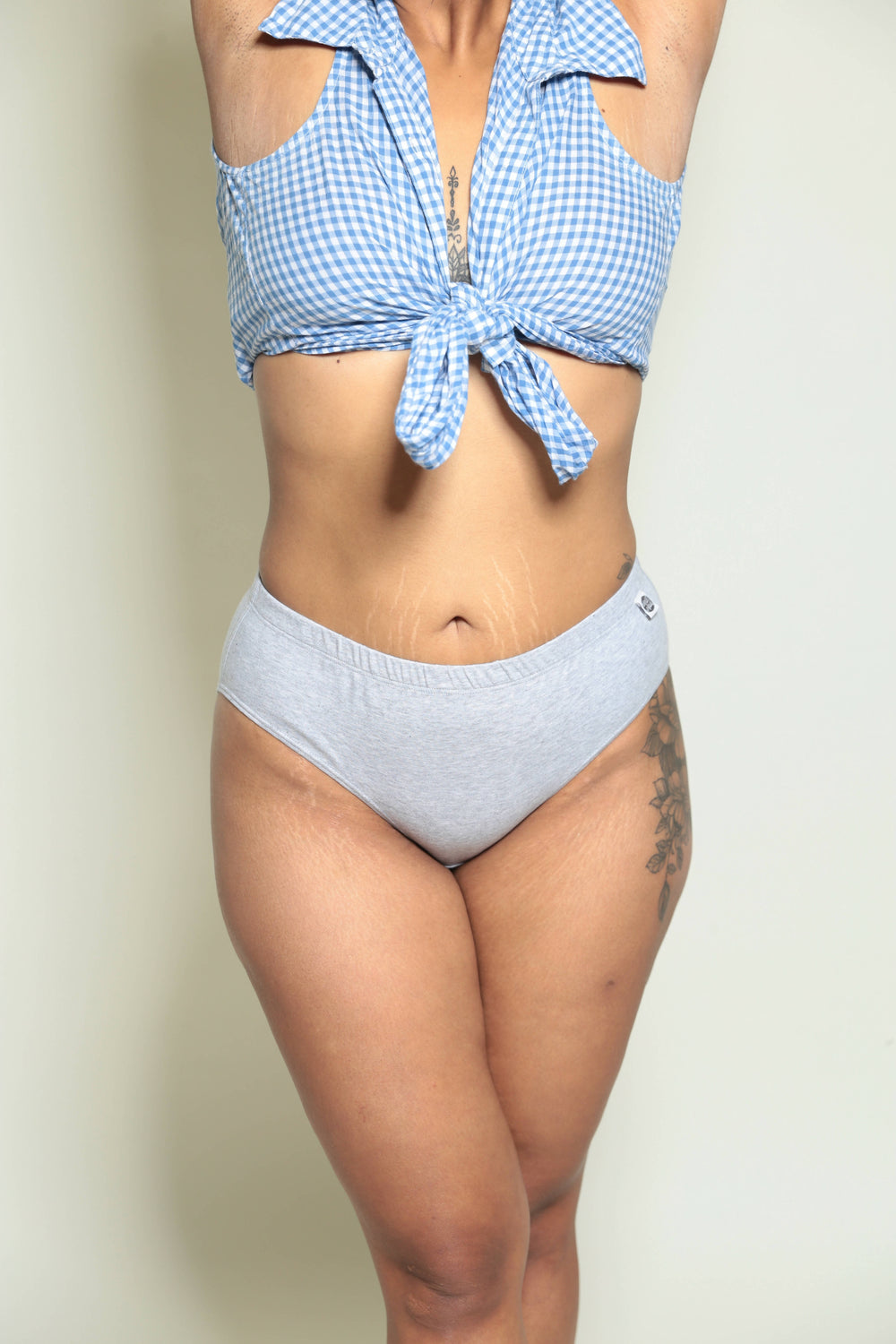 - Elevate your style with the Grey Melange Bikini, a blend of 95% Organic Cotton and 5% Elastane for comfort and flexibility.