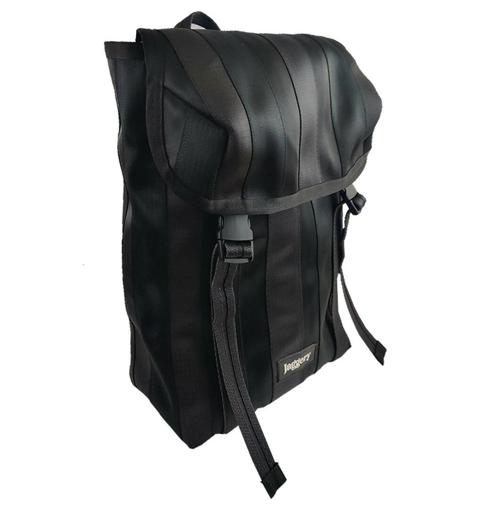 Handcrafted from decommissioned airline belts, car seat belts, and ex-army canvas, lined with soft, water-resistant parachute material.